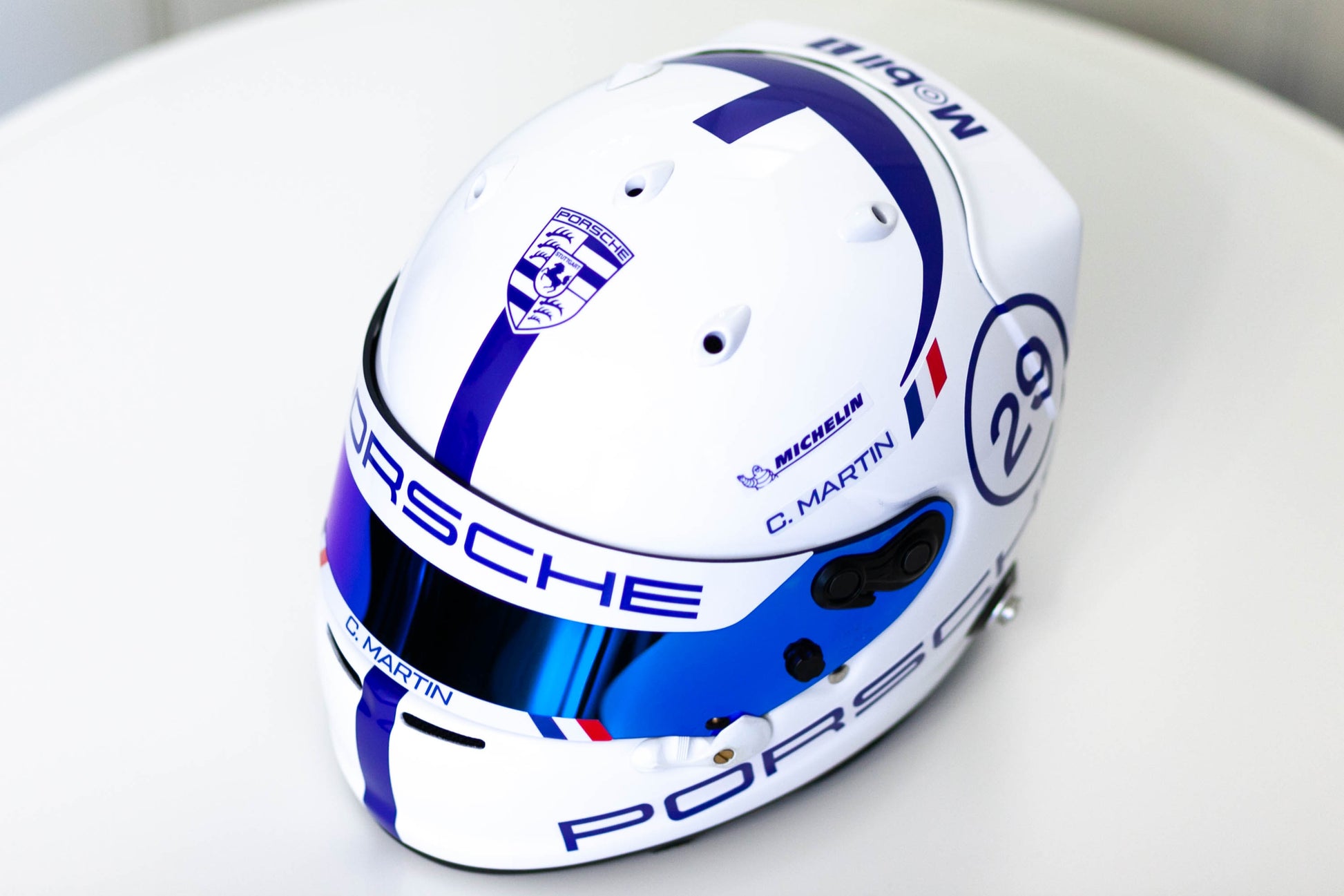 3) Leave an information about logo on visor (like “Swap Porsche to Michelin”)